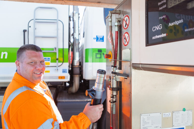 Sinds augustus 2022 wordt dit CNG-station bevoorraad met gas dat we zelf produceren in onze nieuwe vergistingsinstallatie.